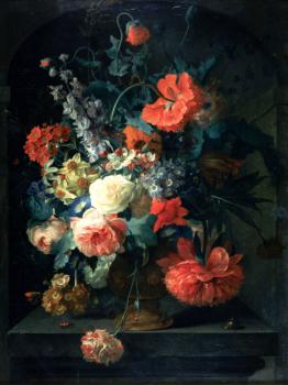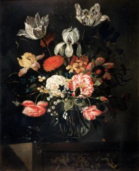 Bodegón con frutas y flores
